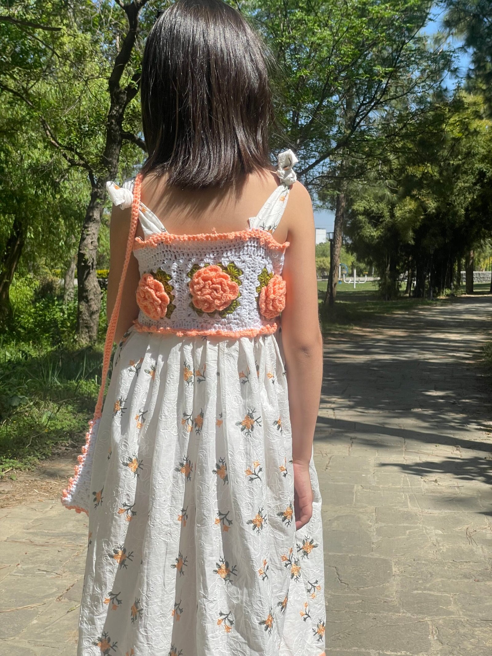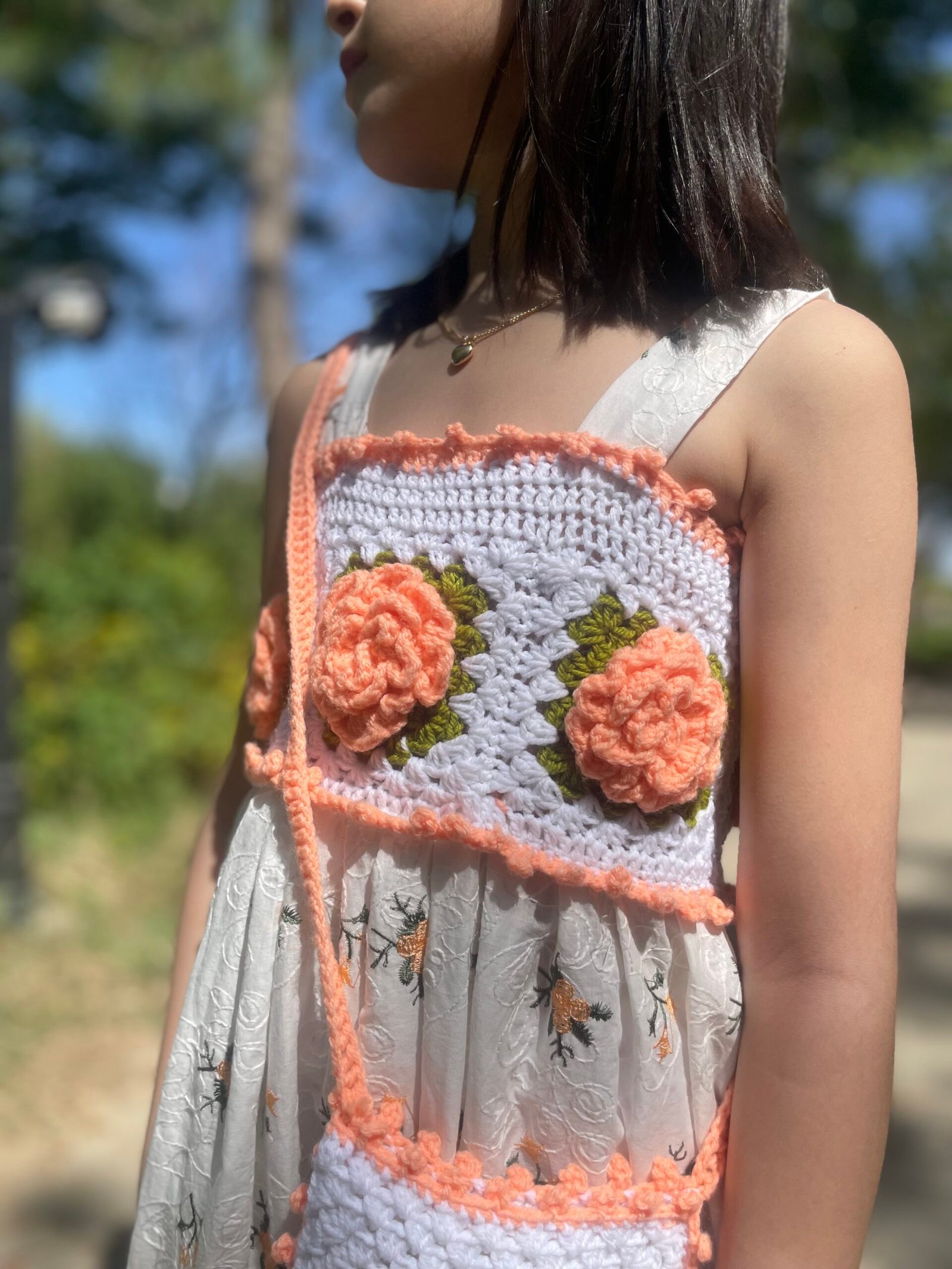 To complete the look, the outfit comes with a matching crochet handbag, adding a fun and fashionable touch that kids will love to carry around.
