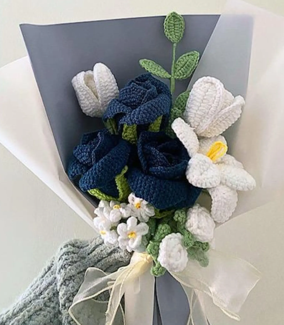 This handmade White & Navy Blue crochet flower bouquet is a luxurious and elegant gift, thoughtfully designed to bring timeless beauty and make a lasting impression 💝🌿. Perfect for birthdays, anniversaries, special occasions, or simply to show someone you care, this sophisticated arrangement combines deep navy, soft grey, and crisp white tones for a modern, stylish look 🤍✨.
