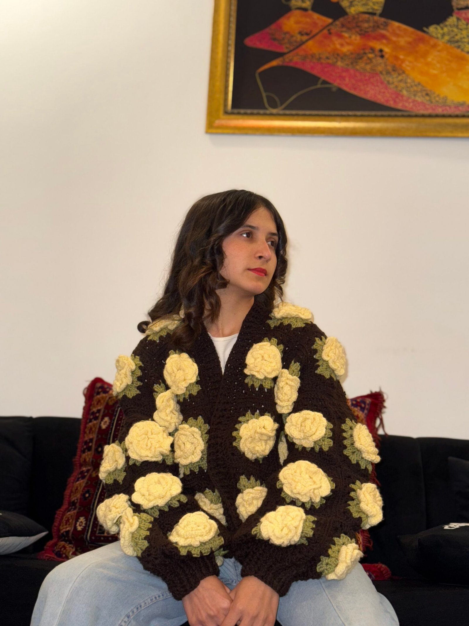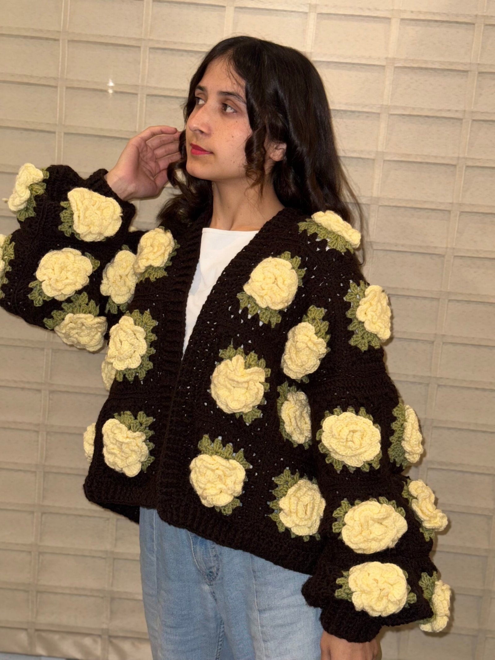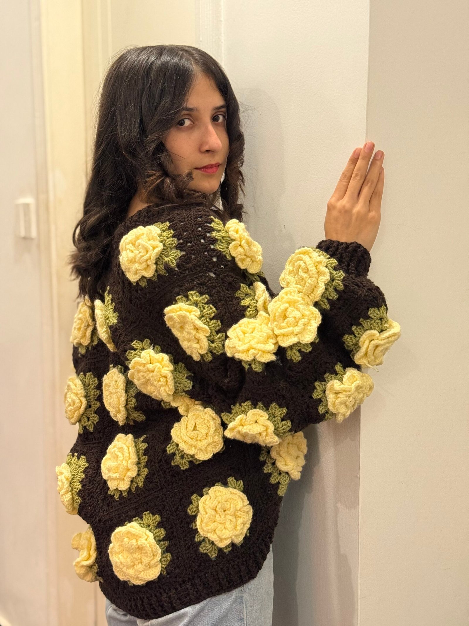 yellow rose cardigan in brown